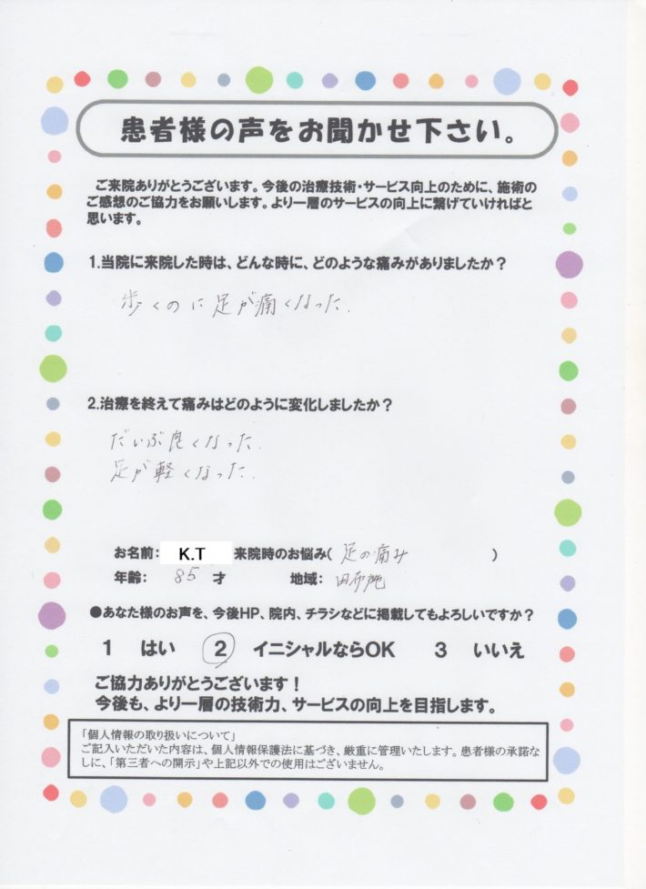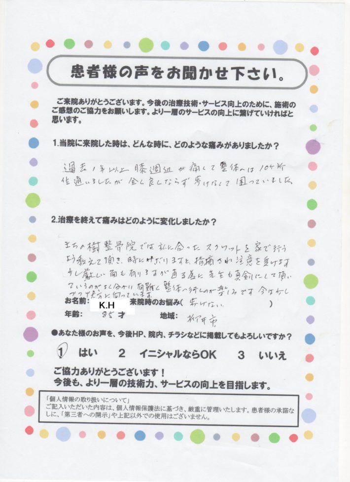 K.H様 85歳 膝痛 柳井市